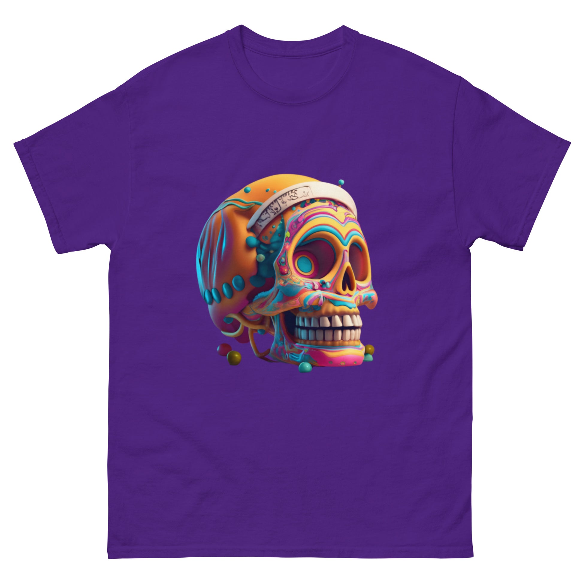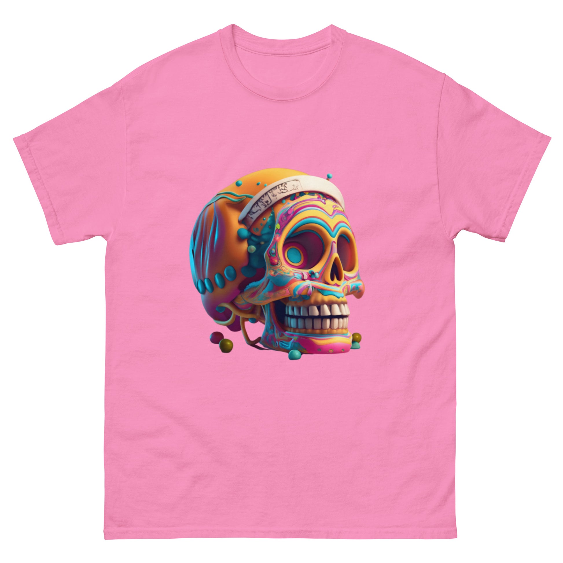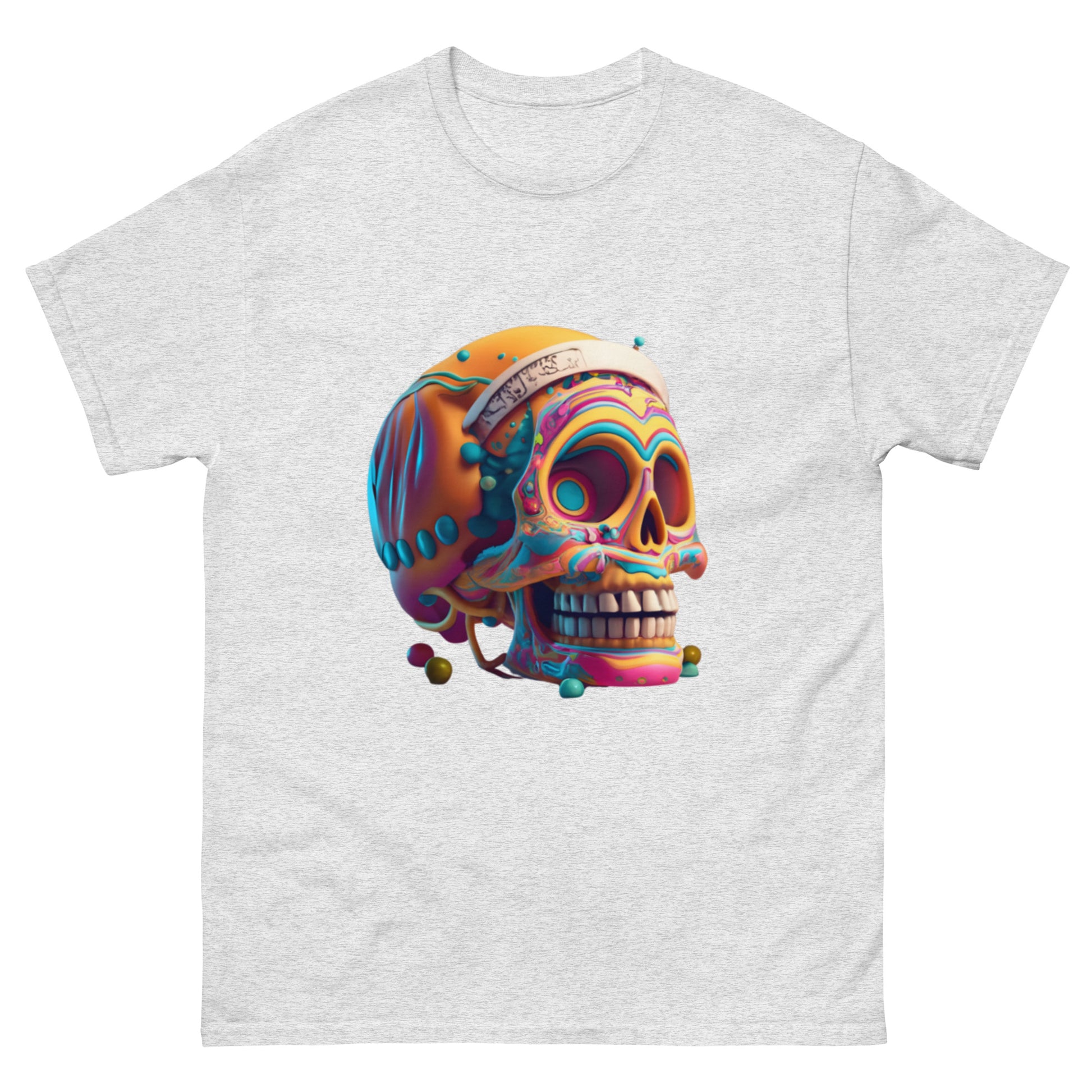 Make a bold style statement with our animated skull T-shirt. This unique and creative design grabs attention and makes you a trendsetter. Perfect for those who love to stand out from the crowd and want to show off their personal style. The skull motif is both playful and edgy, making it a great addition to your wardrobe.