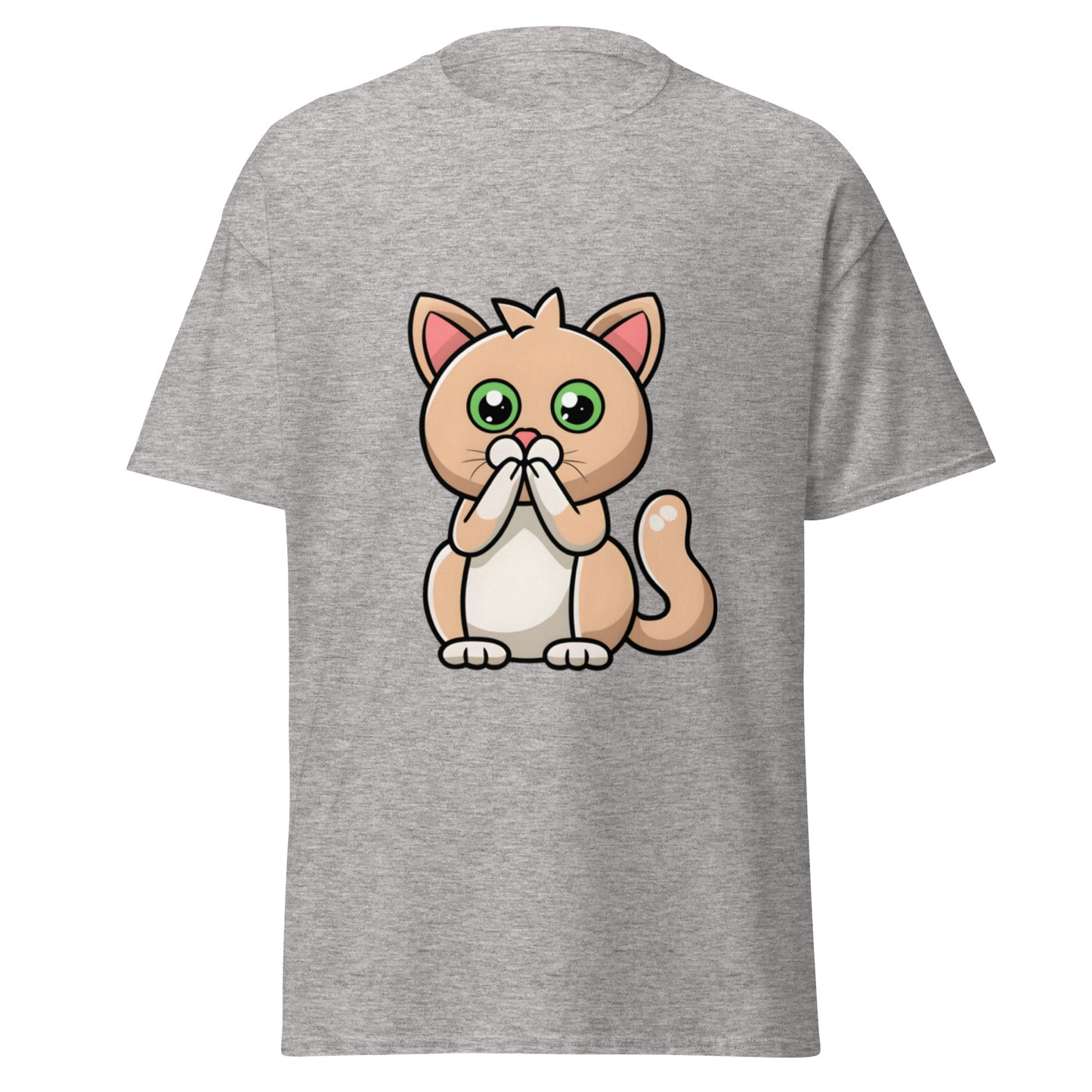 This cute cartoon cat t-shirt is designed to put a smile on your day! A must have for all cat lovers, with a playfully designed cat on the front that melts hearts everywhere. Perfect as a gift or to spread joy in everyday life.
