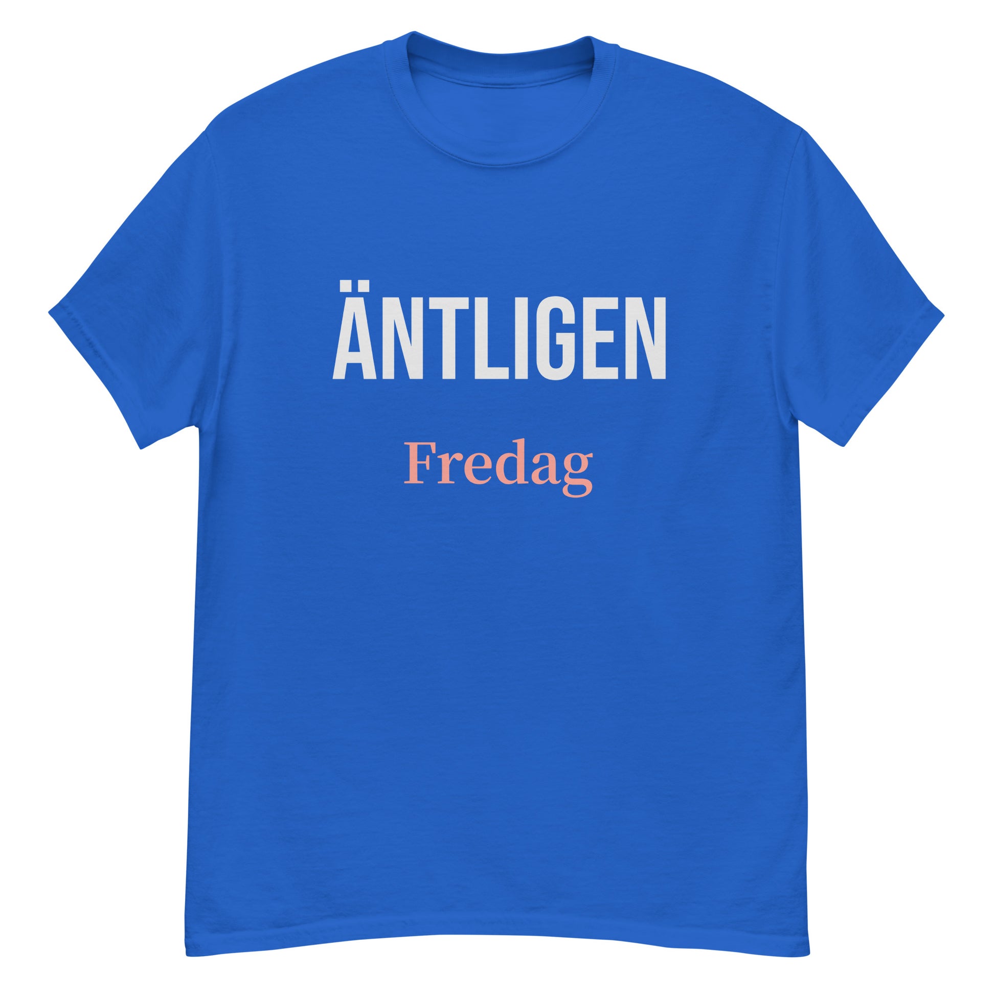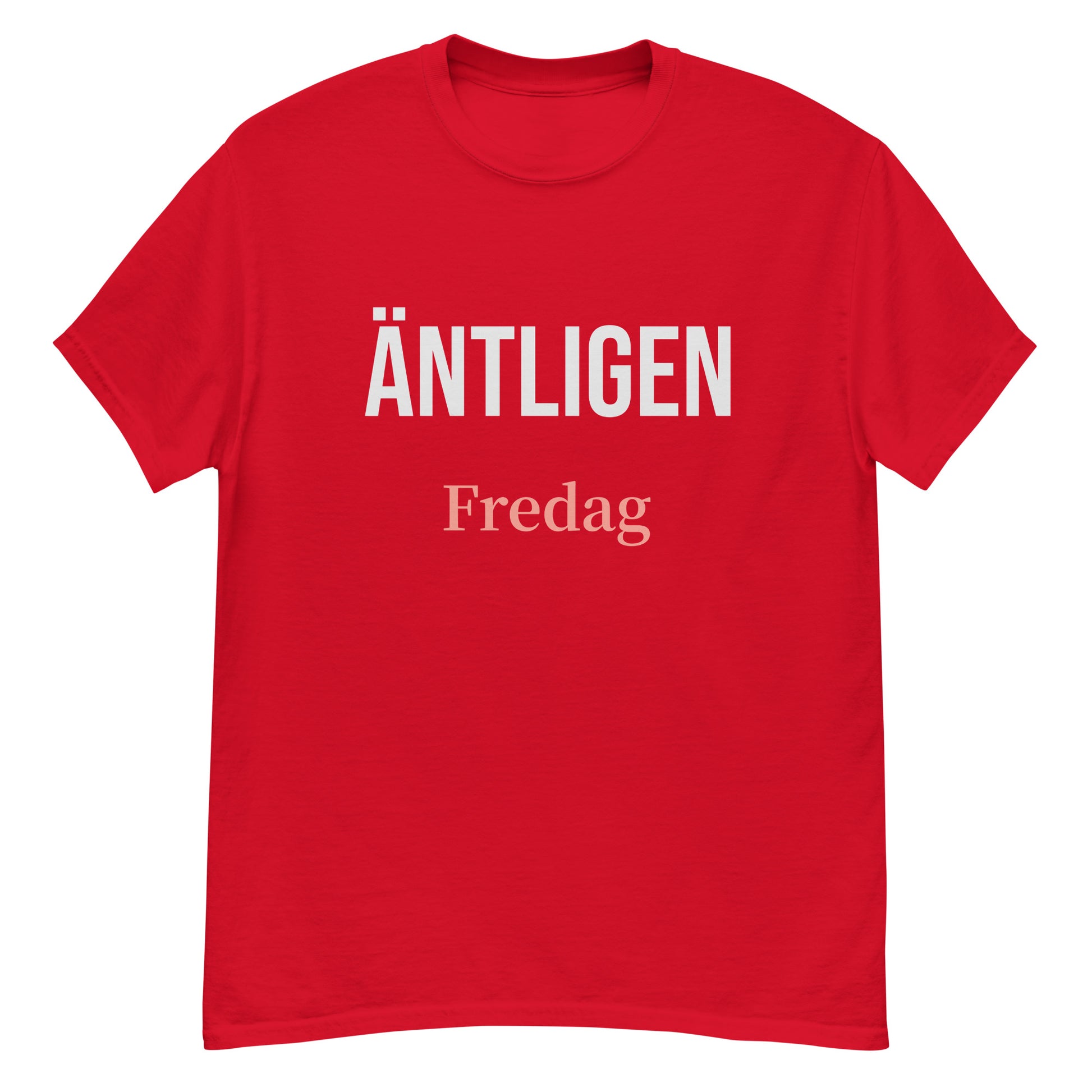 Upptäck vår "Äntligen Fredag" T-shirt! Tillverkad av högkvalitativ bomull med en festlig design och bekväm passform. Den ultimata T-shirten för att fira helgens ankomst!