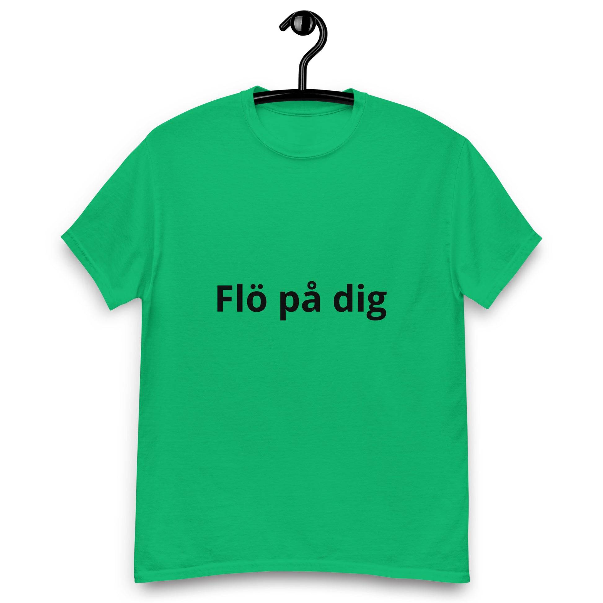 T-shirten har texten "Flö På Dig" tryckt med stora, tydliga bokstäver som är både roliga och stilrena. Designen är enkel men kraftfull, och trycket är gjort med miljövänliga färger som är skonsamma för både dig och naturen.