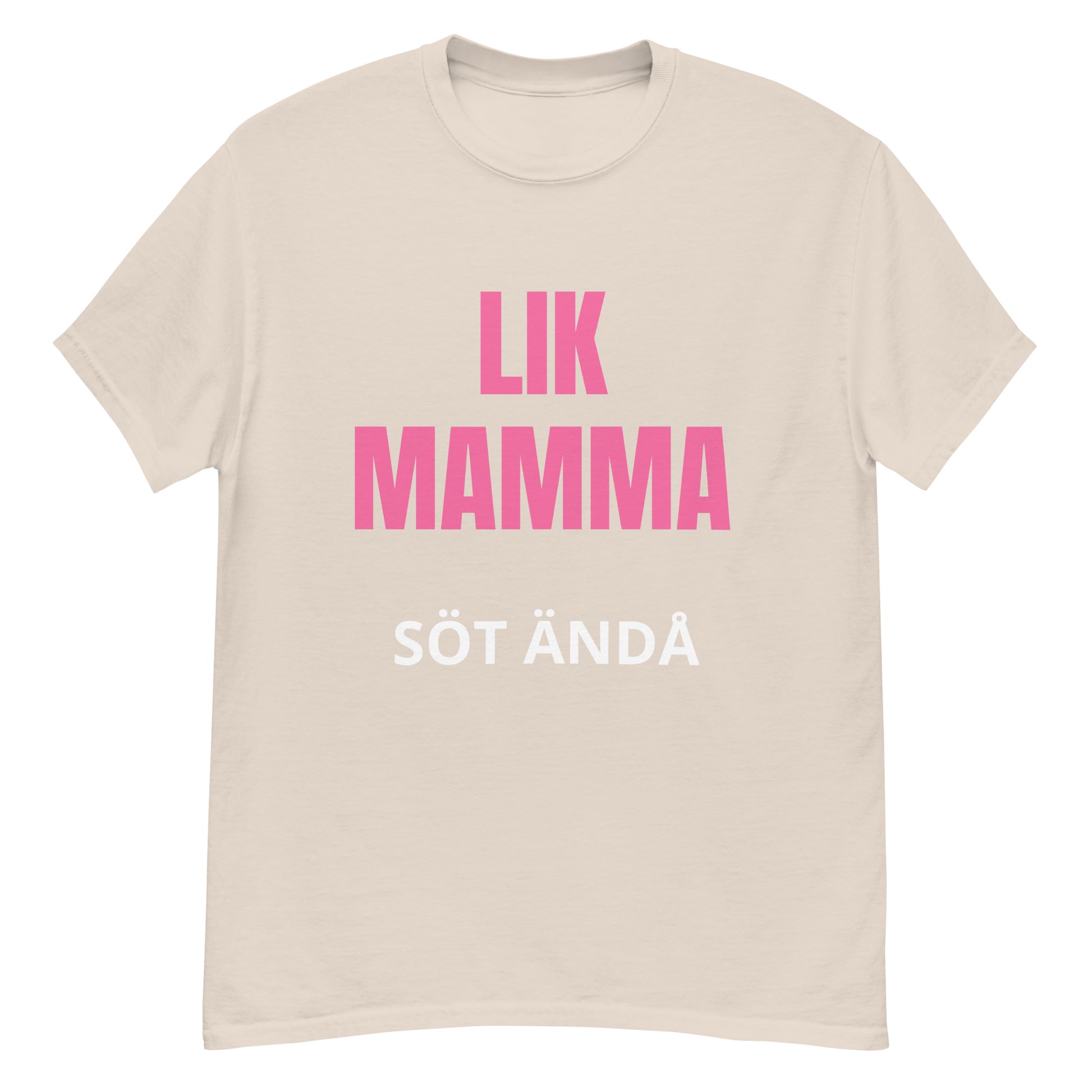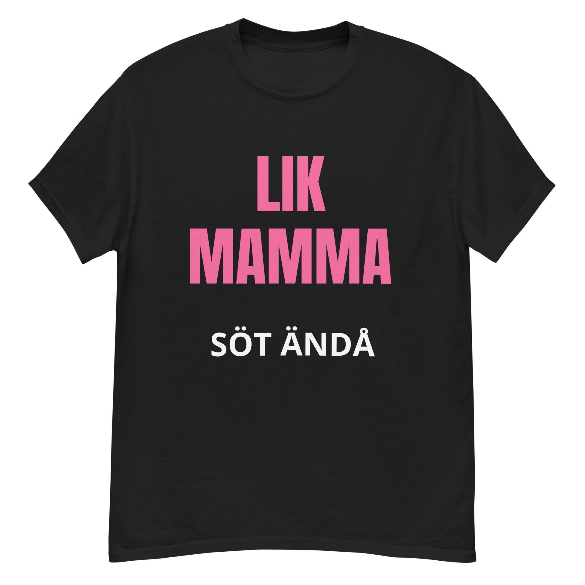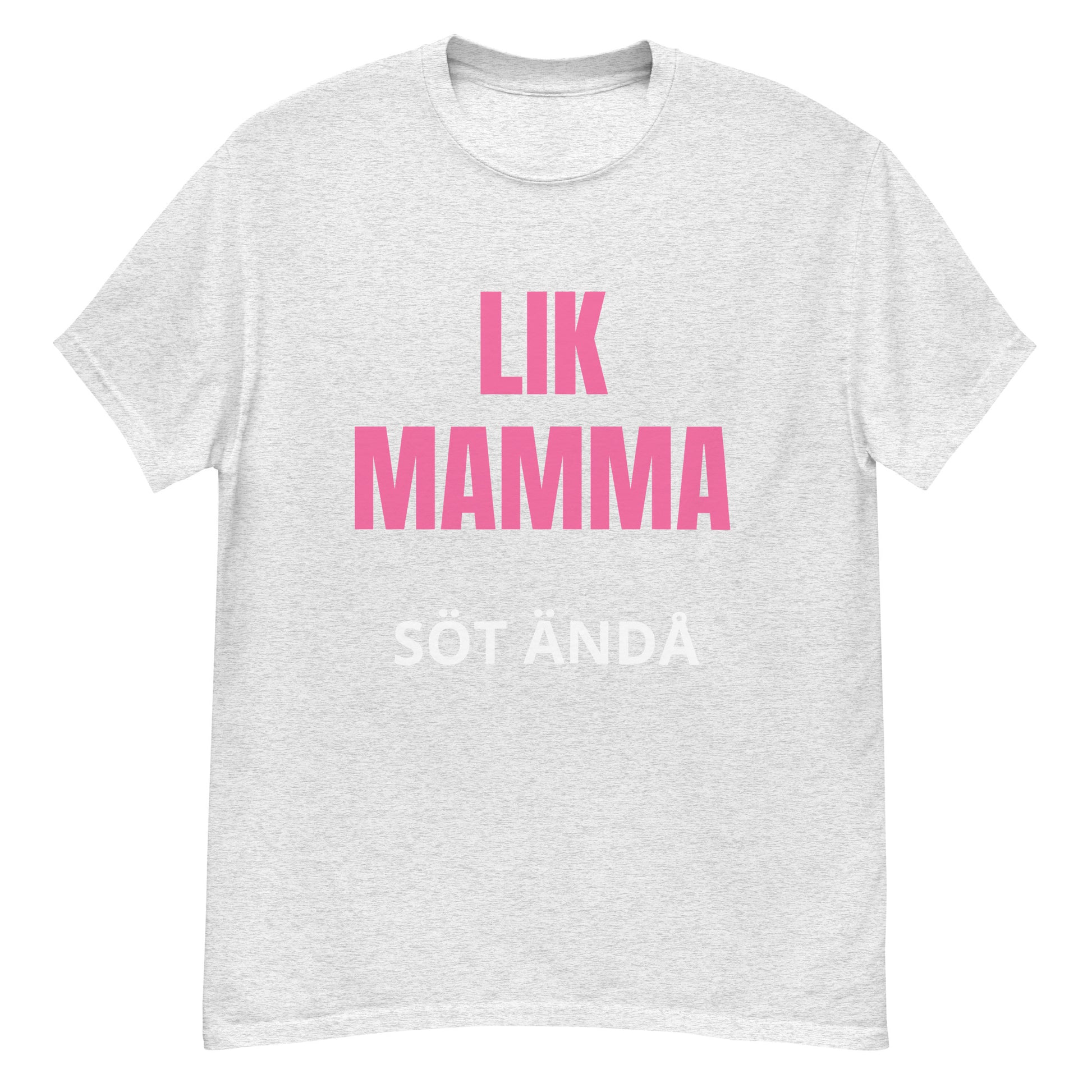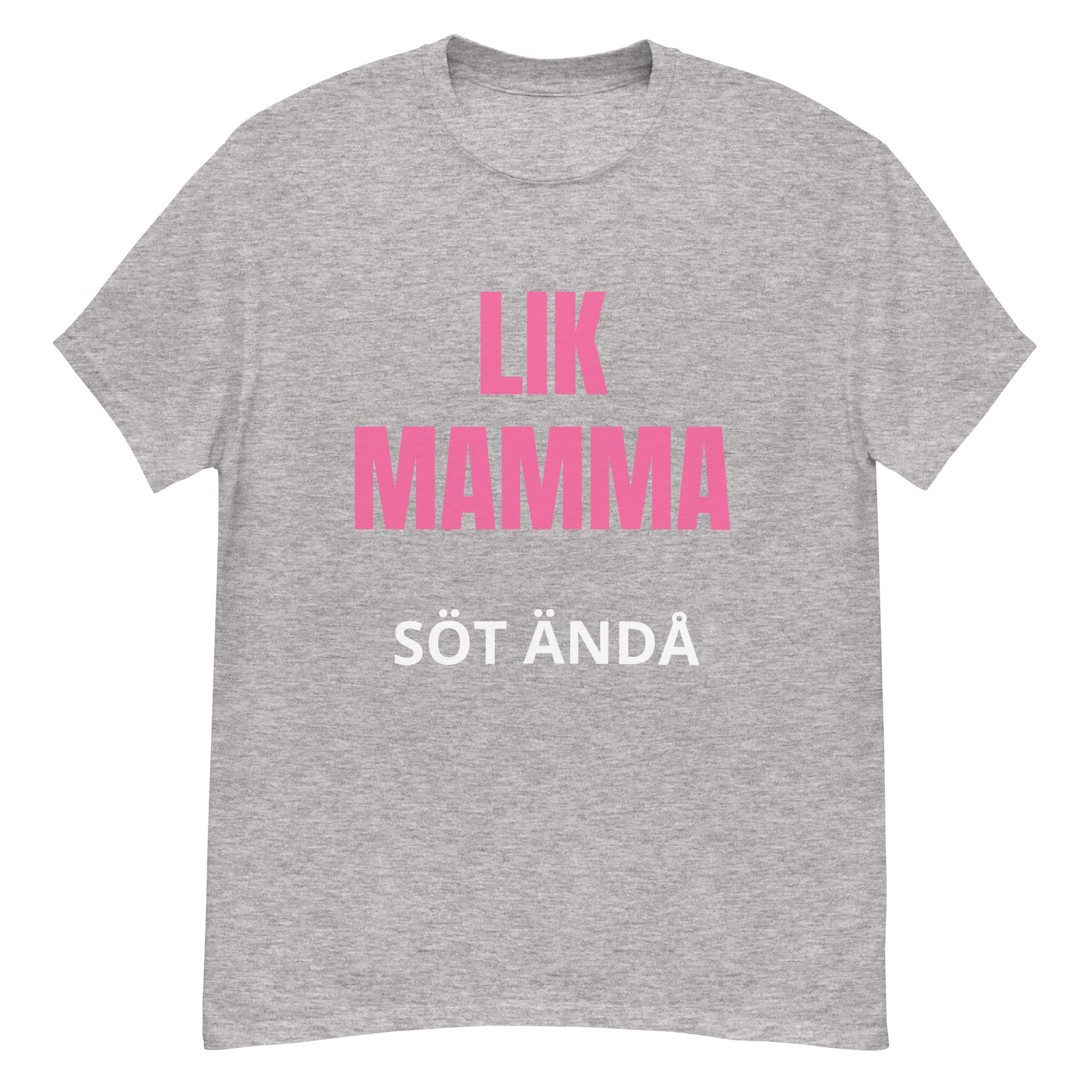 Denna T-shirt har en stilren design med texten "lik mamma söt ändå" tryckt i en lättläst och stilfull font. Texten är placerad centralt på bröstet för maximal synlighet och effekt. Designen är enkel men kraftfull, vilket gör den till ett perfekt tillskott i garderoben.