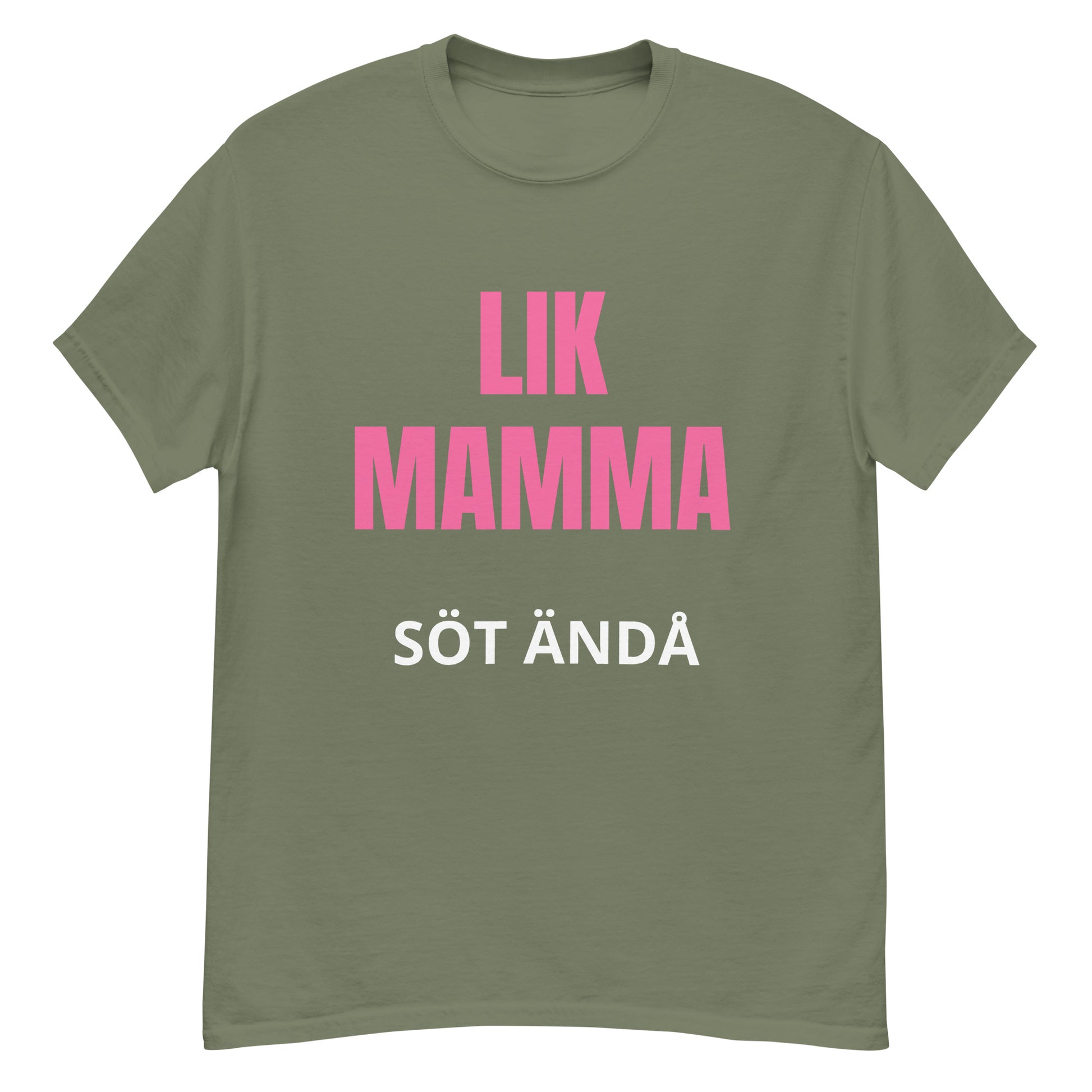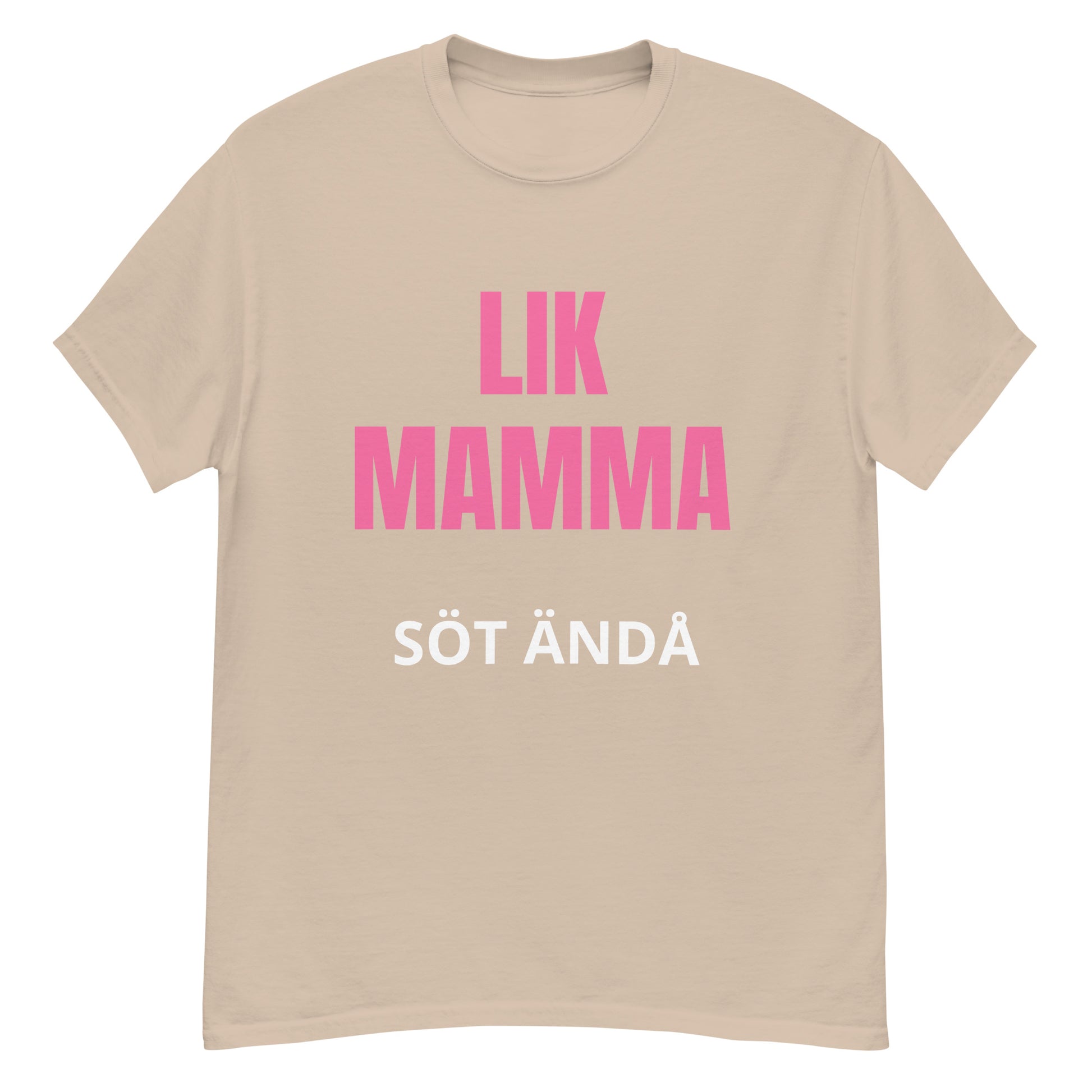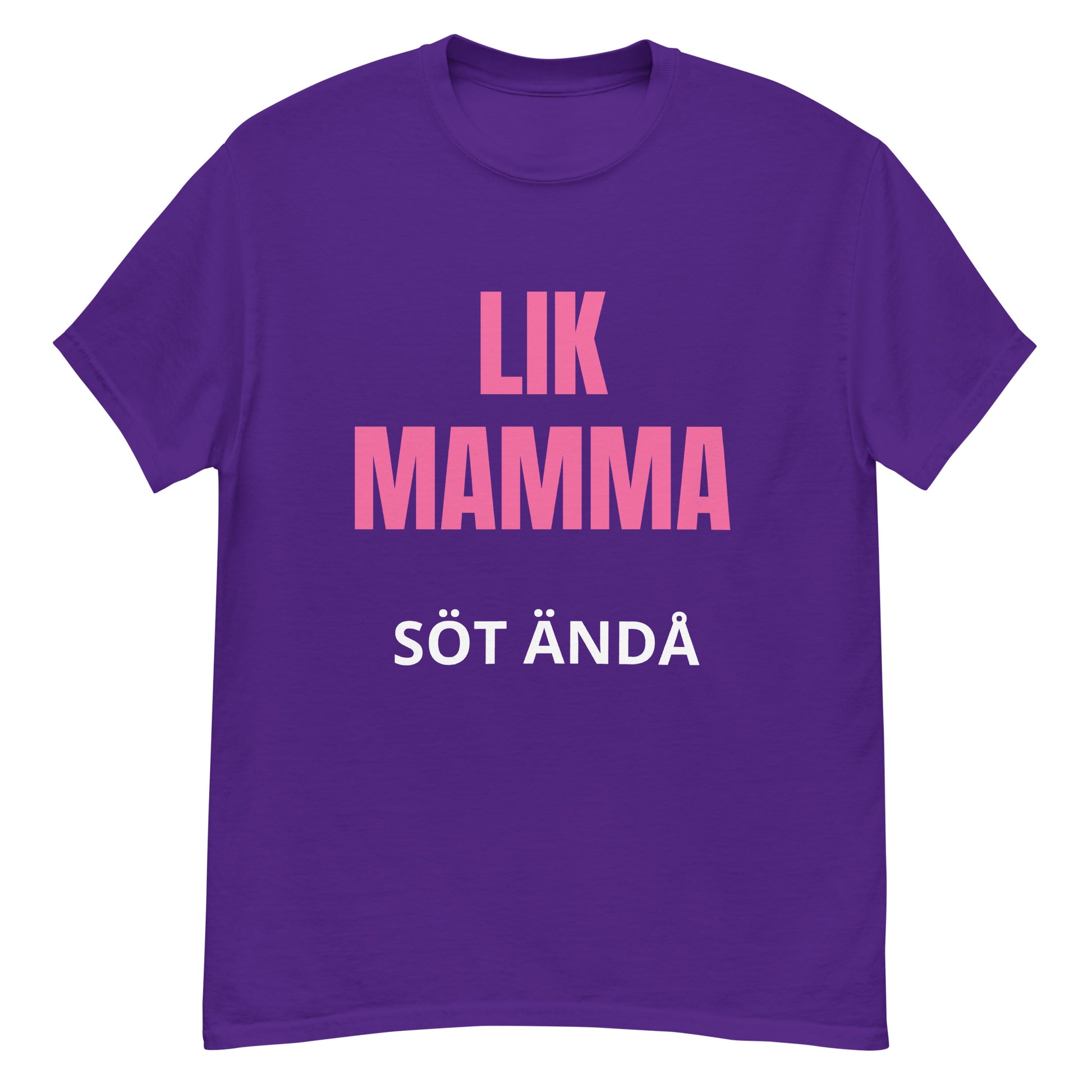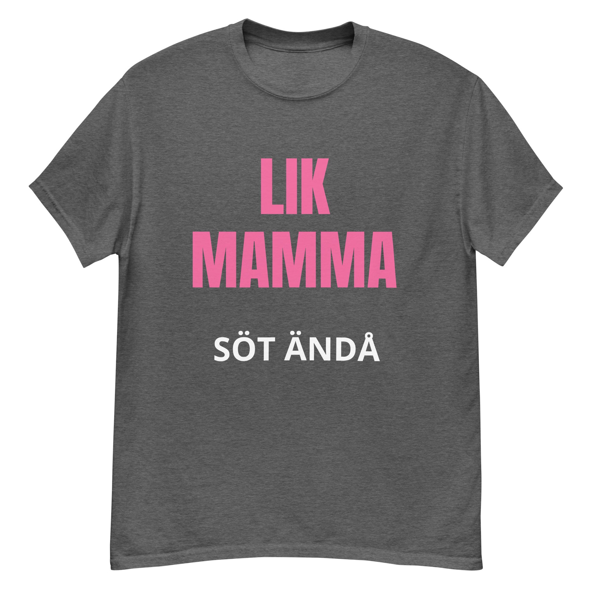Denna T-shirt har en stilren design med texten "lik mamma söt ändå" tryckt i en lättläst och stilfull font. Texten är placerad centralt på bröstet för maximal synlighet och effekt. Designen är enkel men kraftfull, vilket gör den till ett perfekt tillskott i garderoben.