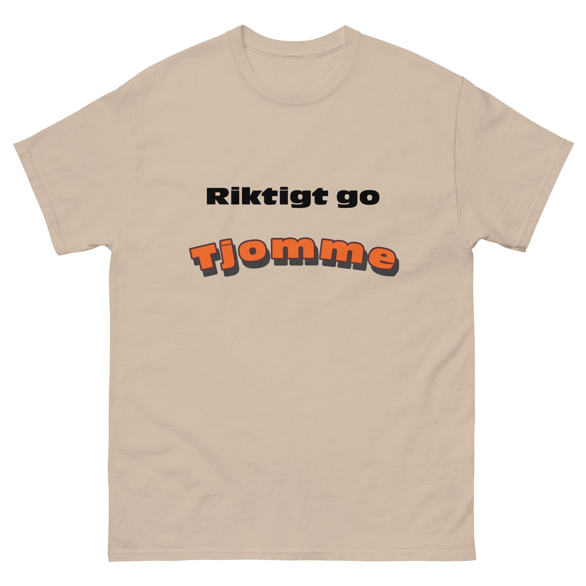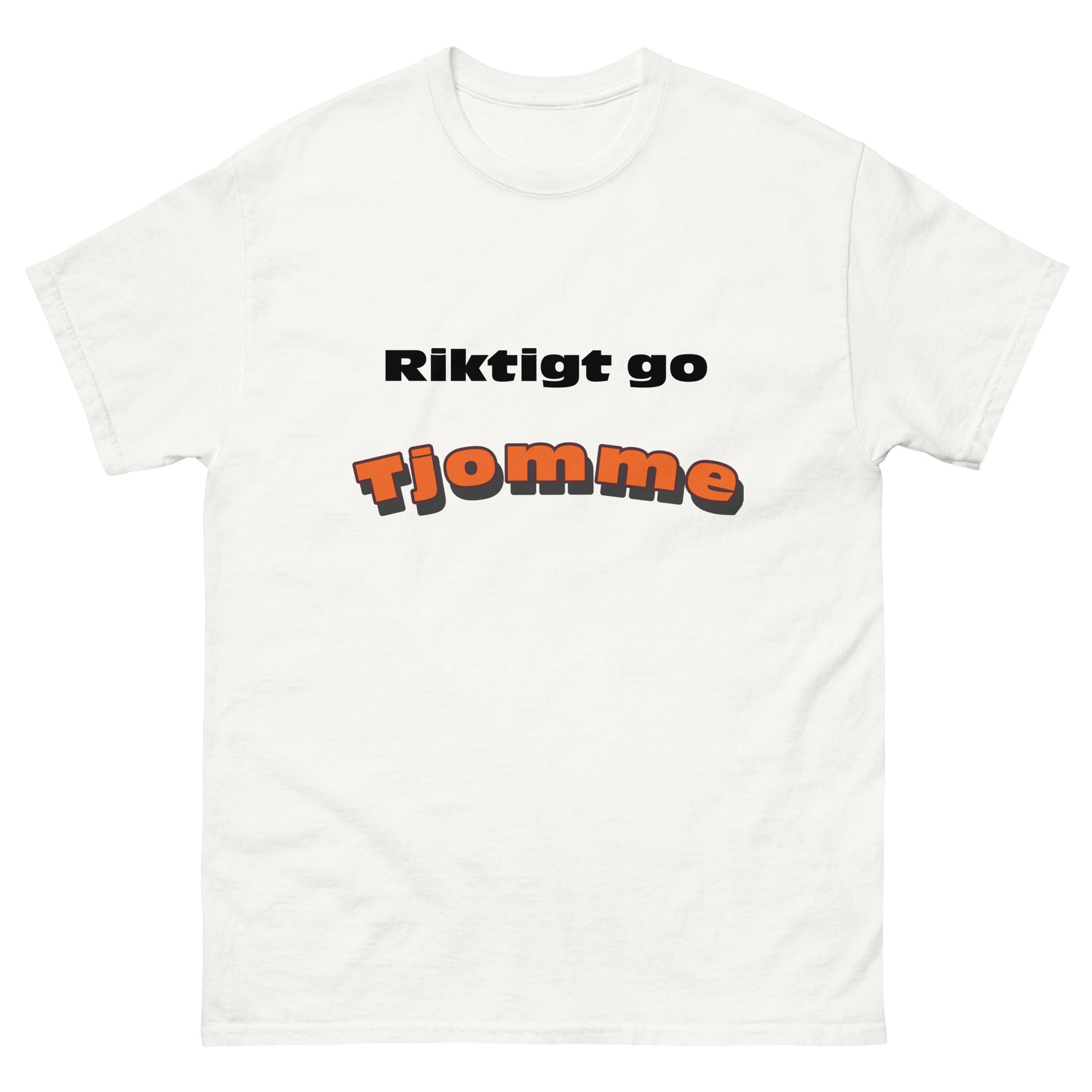 Upptäck vår "Riktigt Go Tjomme" T-shirt! Tillverkad av högkvalitativ bomull med en rolig och inspirerande design. Perfekt för att sprida glädje och gött skratt varje dag!