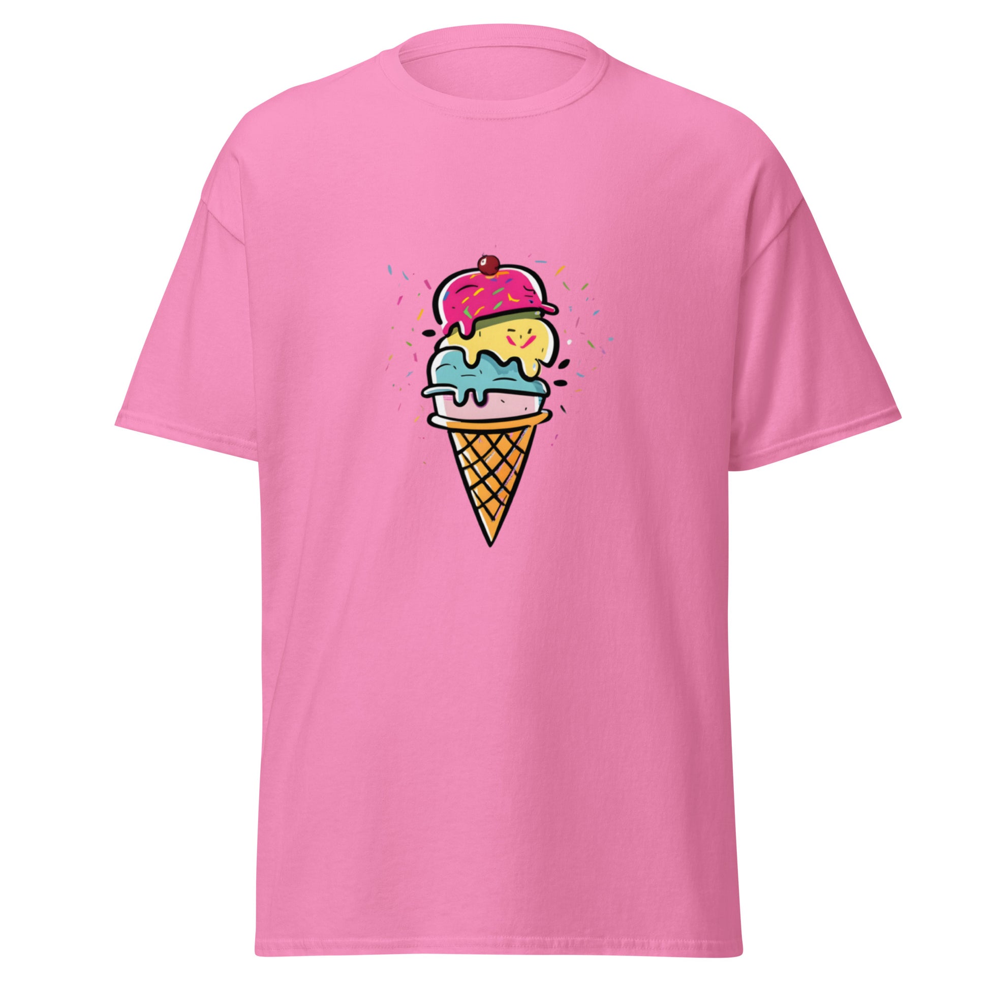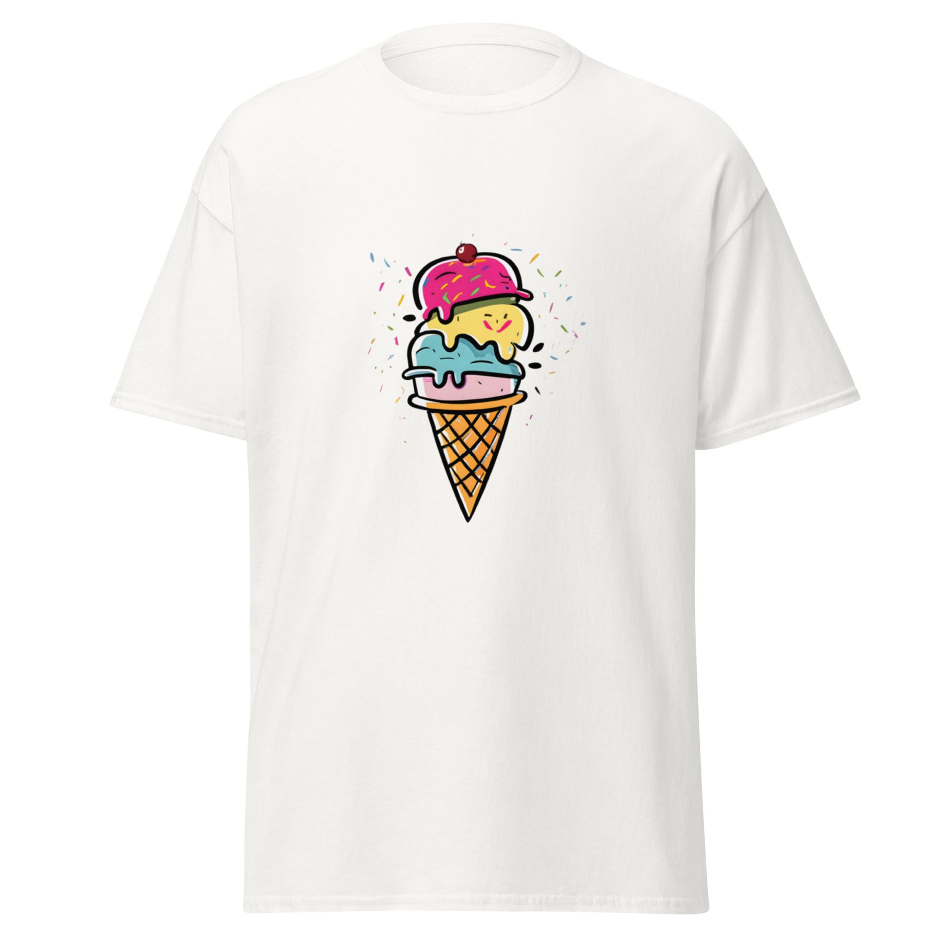 Älskar du glass? Då kommer du att älska vår T-shirt med ett färgglatt och roligt glassmotiv! Perfekt för att fånga den där härliga sommarkänslan året om. Oavsett om du är på stranden, på en sommarfest eller bara vill sprida lite extra glädje, kommer denna T-shirt att vara din bästa vän.