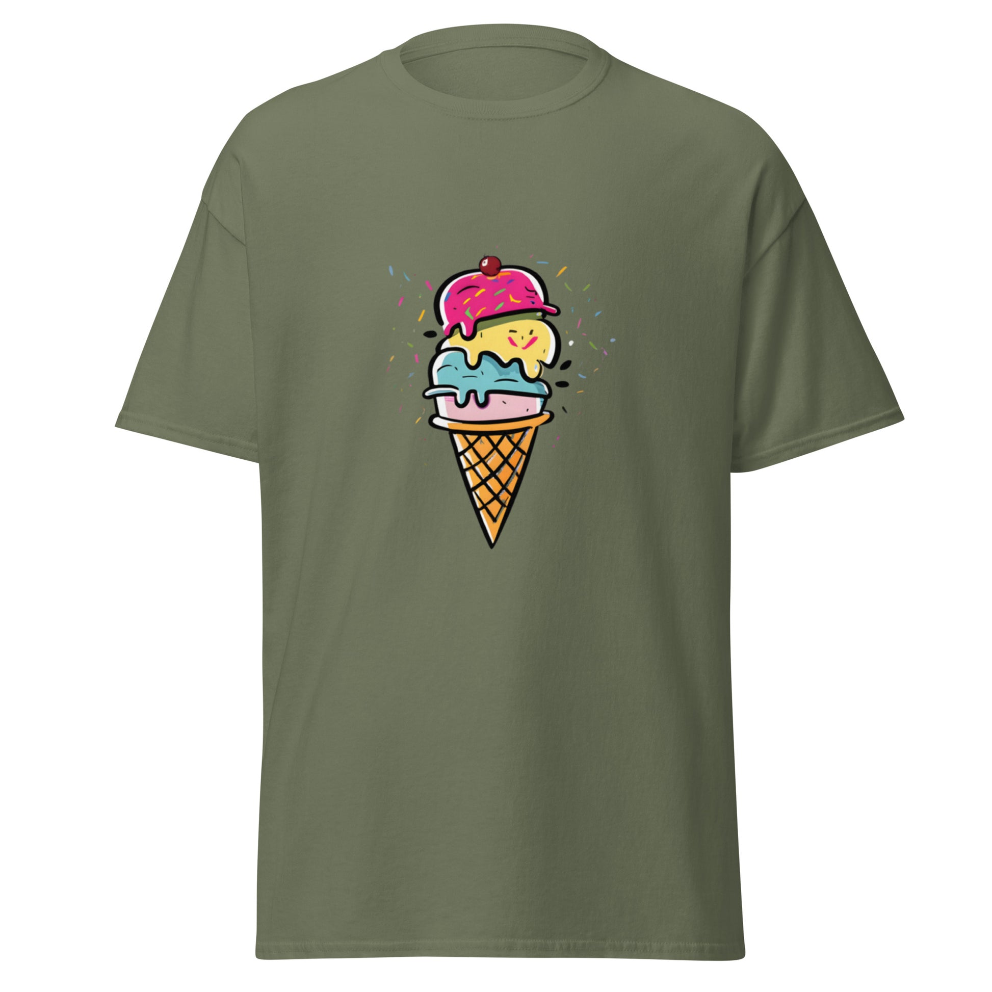 Upptäck vår läckra T-shirt med ett glassmotiv! Perfekt för sommarens alla äventyr. Mjuk bomull, skön passform och enkel att sköta – den perfekta tröjan för glassälskare.
