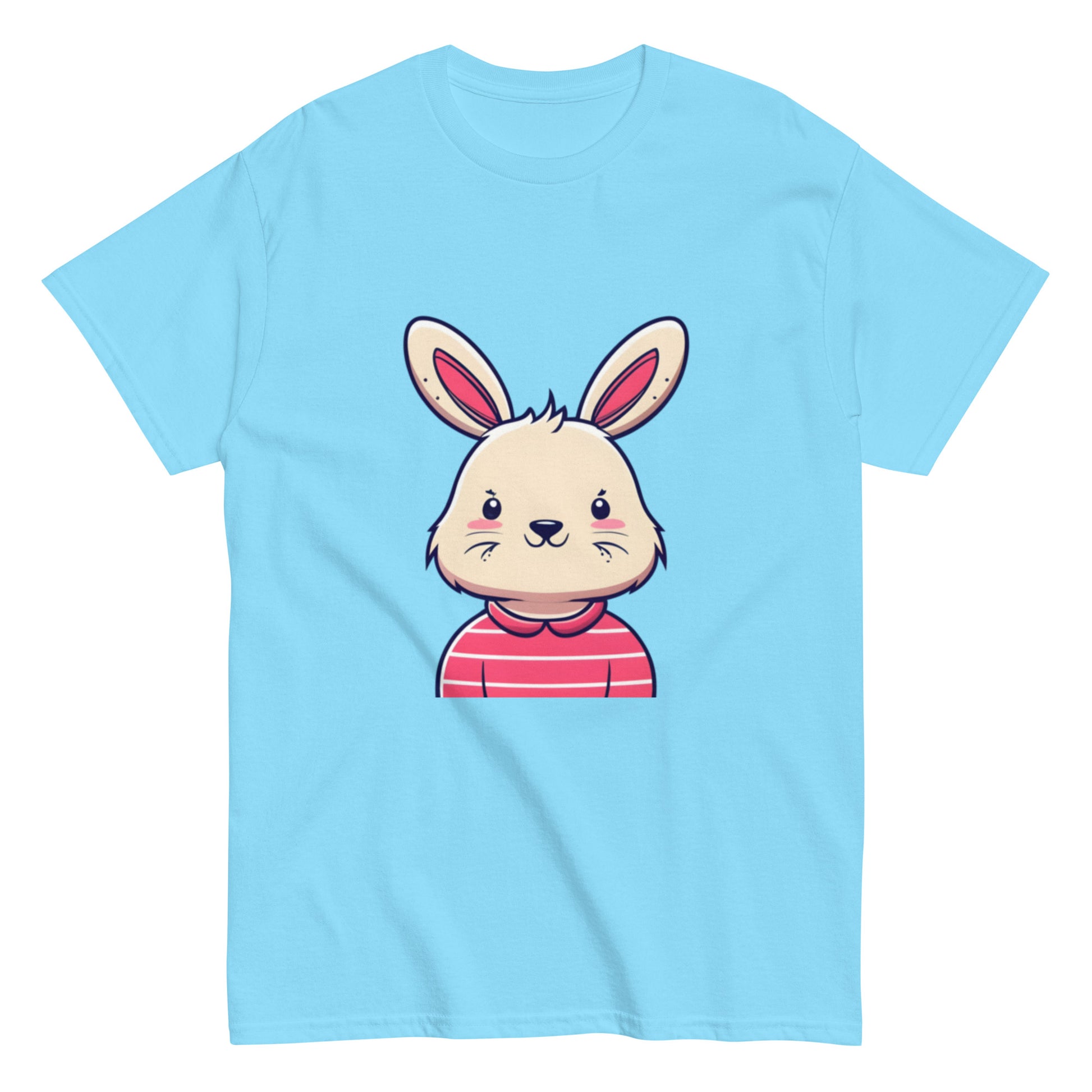 Tillverkad av mjukt och bekvämt bomullsmaterial, är vår kanin-tshirt perfekt för dagar när du vill känna dig bekväm och avslappnad. Ge dig ut på äventyr med total komfort och självsäkerhet, medan du låter din personliga stil lysa igenom varje outfit.