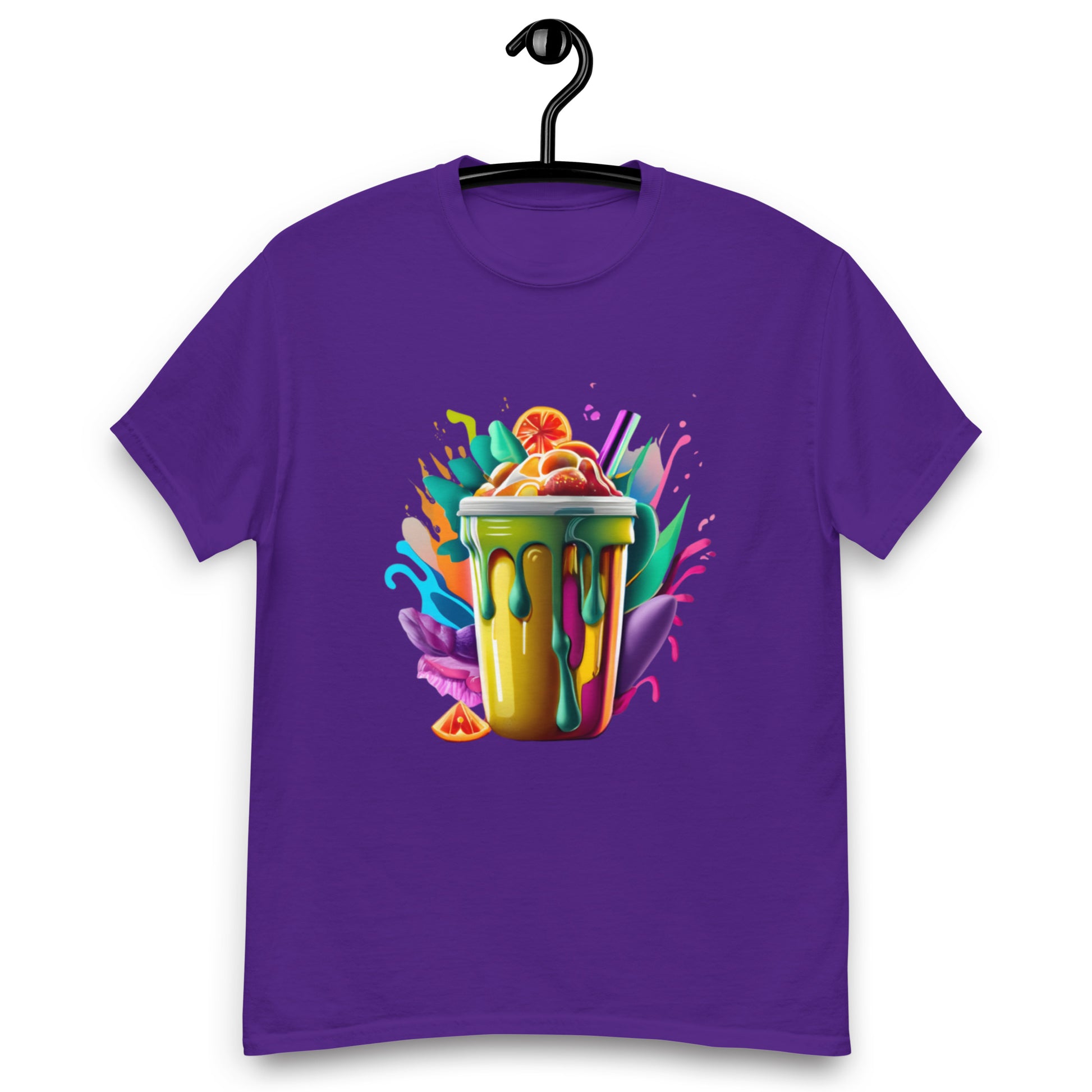 Vår T-shirt med ett färgglatt smoothiemotiv är en hyllning till hälsa och friskhet! Designen är livfull och inspirerande, vilket gör den till en favorit i garderoben. Med en färgsprakande smoothie på din T-shirt, blir du en levande symbol för energi och positivitet var du än går. Visa din kärlek till hälsa och stil med detta unika plagg!